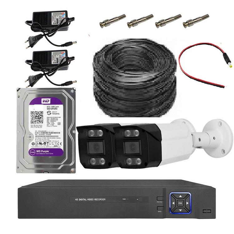 پک کامل 2 دوربین مداربسته دید در شب رنگی دارای هارد ذخیره و کابل وارم لایت