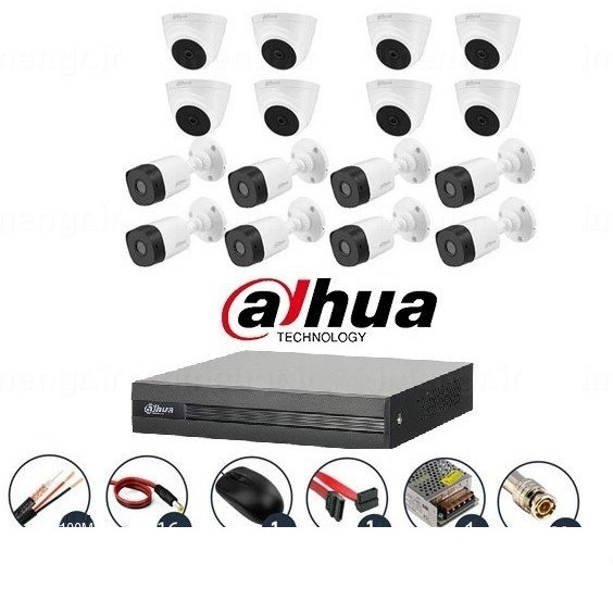 پک کامل 16 دوربین مداربسته داهوا B1A21P ا T1A21P ا T1A21P ا PACK 16 CCTV B1A21P دارای هارد ۱ترا و ۸۰متر کابل