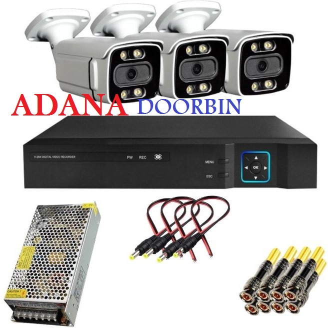 دوربین مداربسته پک 3 عددی دید در شب رنگی دارای برنامه انتقال تصویر موبایل؛ هارد ذخیره و 30متر کابل