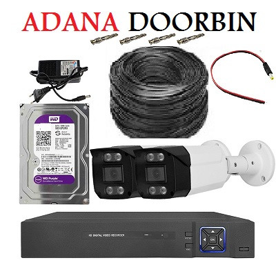 پک کامل دوربین مداربسته 2 دوربین لنز 3مگاپیکسل دید در شب رنگی/هارد ذخیره/کابل رایگان