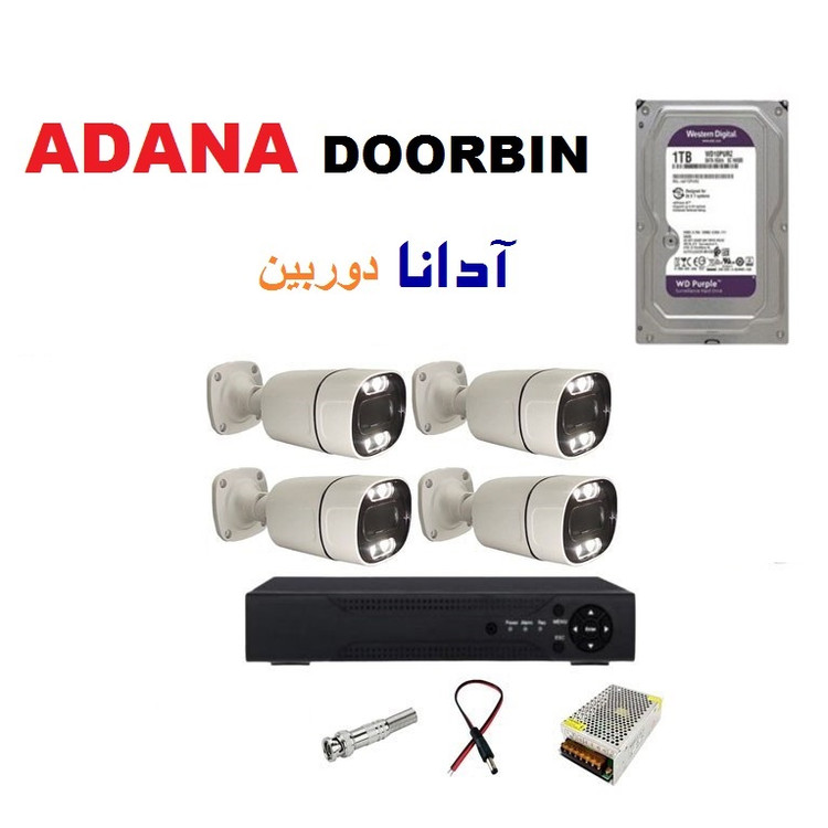 پک کامل 4 عددی دوربین مداربسته 5 مگاپیکسل فول اچ دی هارد 1 ترا /50متر کابل/پلاک خوان و تشخیص چهره وارم لایت دیدشب رنگی